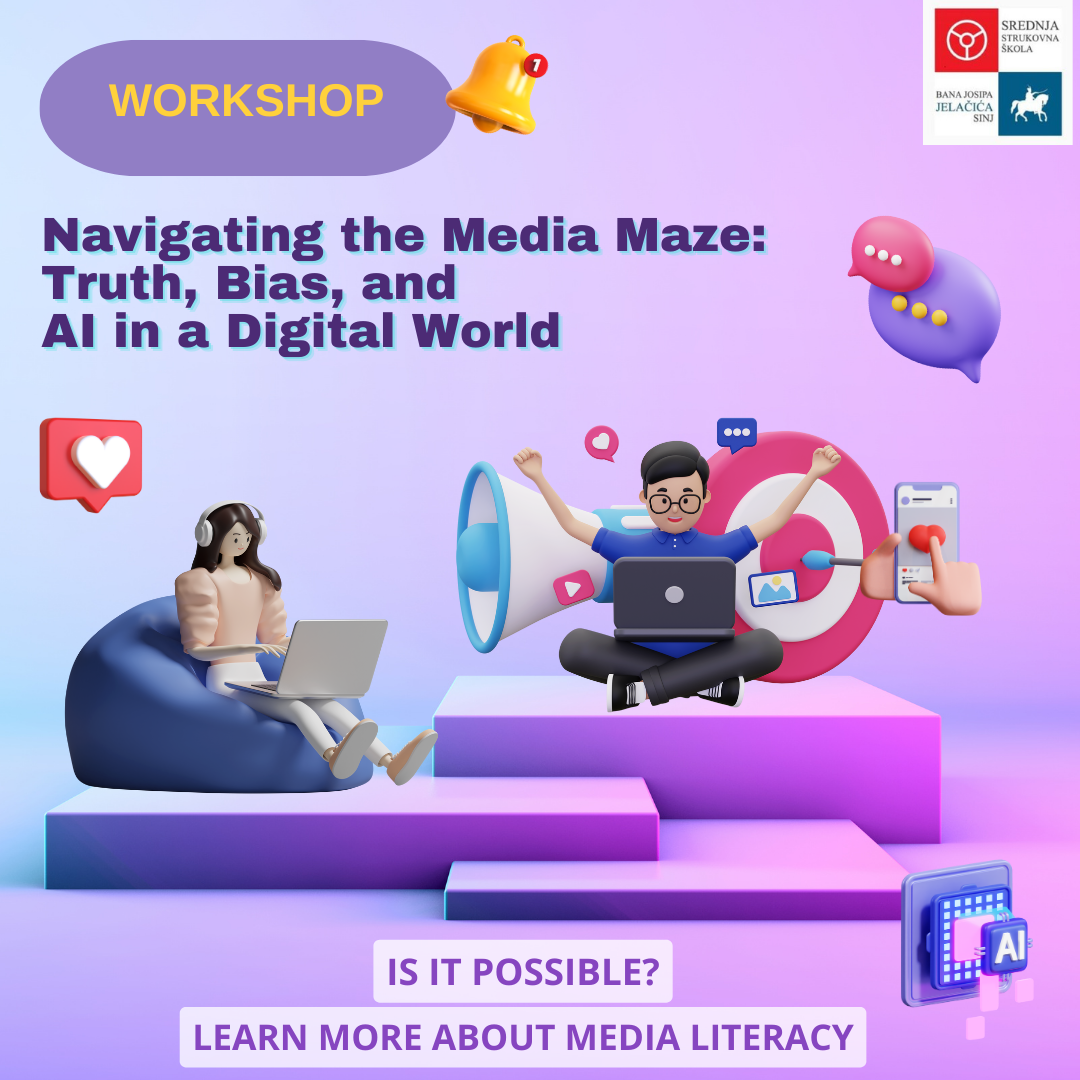 During the All Digital Weeks 2025. will be organized a dynamic 3 hour interactive workshop „Navigating the Media Maze: Truth, Bias, and AI in a Digital World“ which aims to empower individuals with the knowledge and skills needed to navigate the complex and ever-changing media landscape. By fostering a more informed and discerning society, participants will be better equipped to distinguish fact from fiction, recognize bias, and engage with media in a thoughtful and responsible way.
